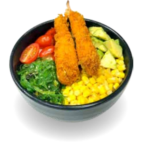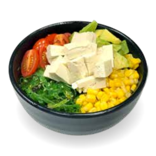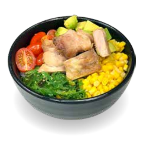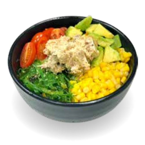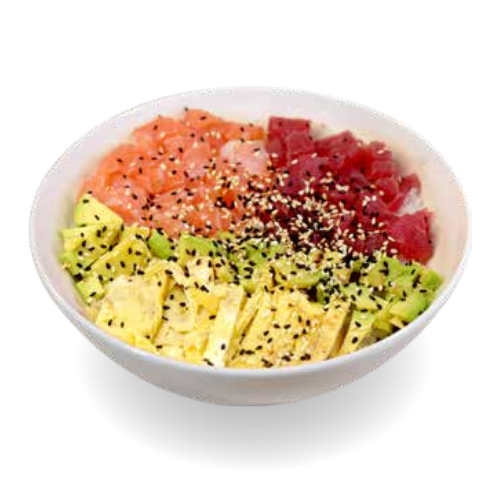 soupe et salade Chirashi tartare, saumon, thon, omelette, avocat, et sésames