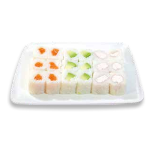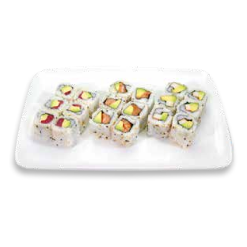soupe et salade 18 california : 6 saumon avocat 6 thon avocat, 6 surimi avocat