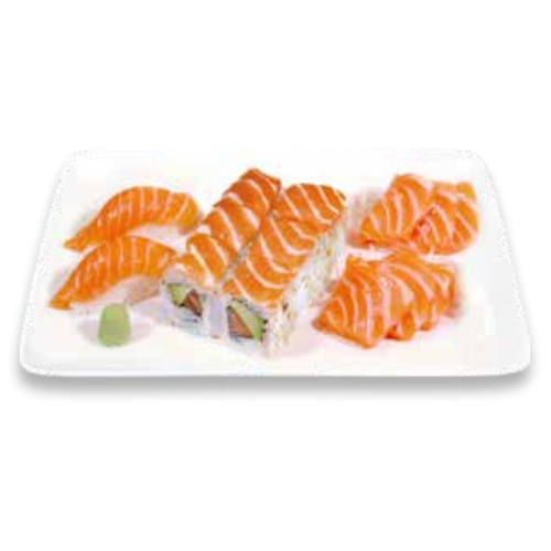 soupe, salade et riz 6 maki saumon, 4 sushi saumon 8 sashimi saumon