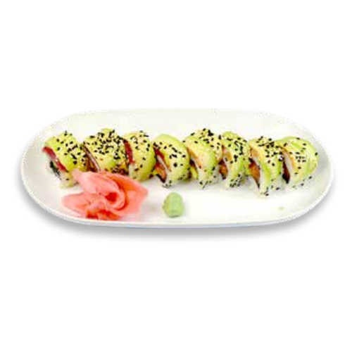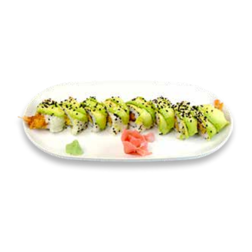 soupe, salade et riz 8 dragon roll recouvert avocat, saumon, thon et avocat