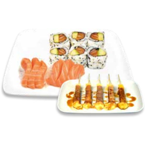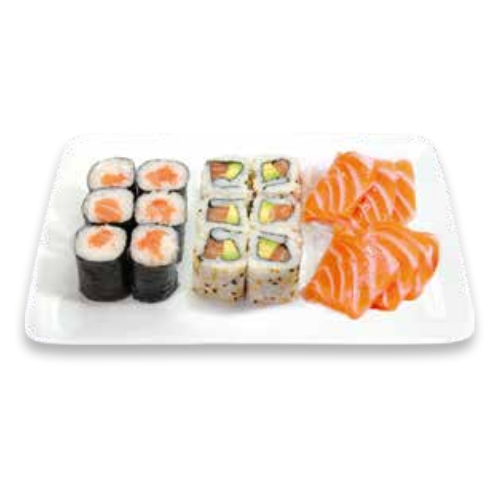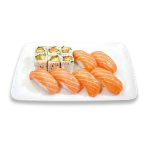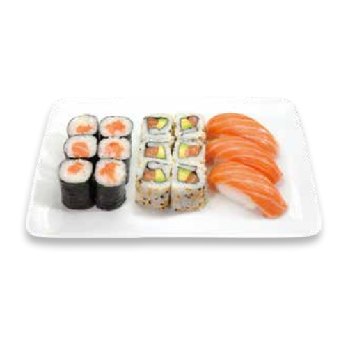 soupe et salade 6 california saumon avocat, 6 maki saumon, 3 sushi saumon