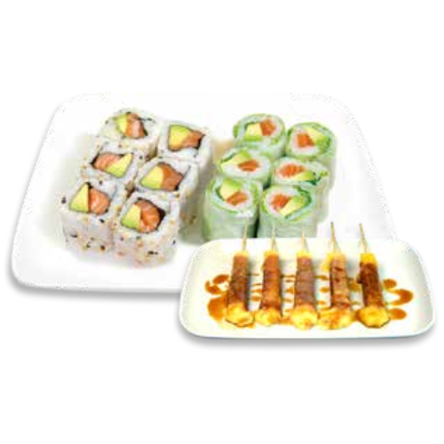 soupe, salade et riz 6 california saumon avocat, 6 maki saumon, 6 sashimi saumon